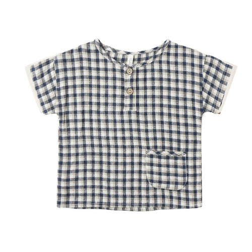 Rylee + Cru - Woven Henley Tee || Navy Check