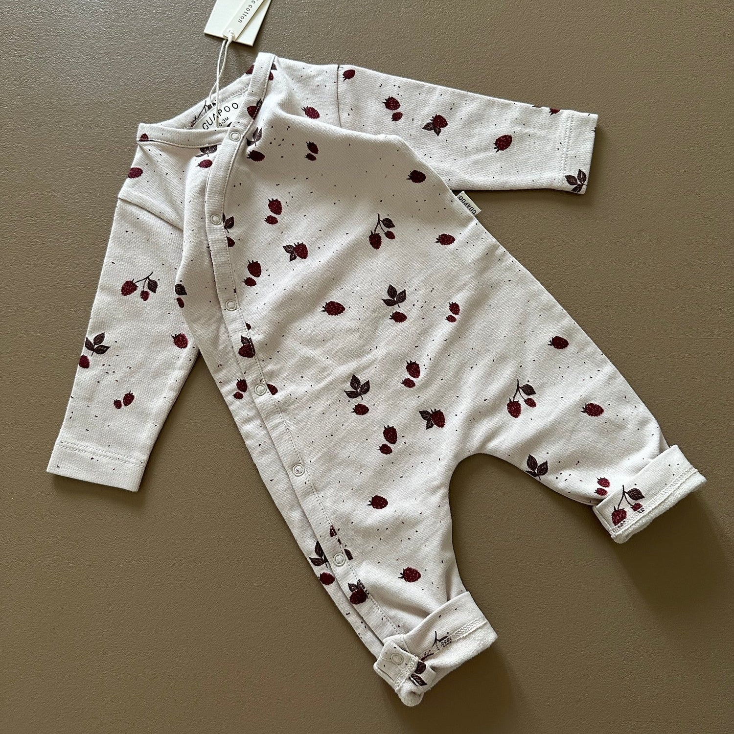 This cute romper with mini raspberry print brings fun to every changing moment! Thanks to practical press studs, it is easy to put on and take off. Made of GOTS-certified organic cotton, it protects nature and ensures a healthy, comfortable feeling for your little treasure. Perfect for playful days full of comfort!