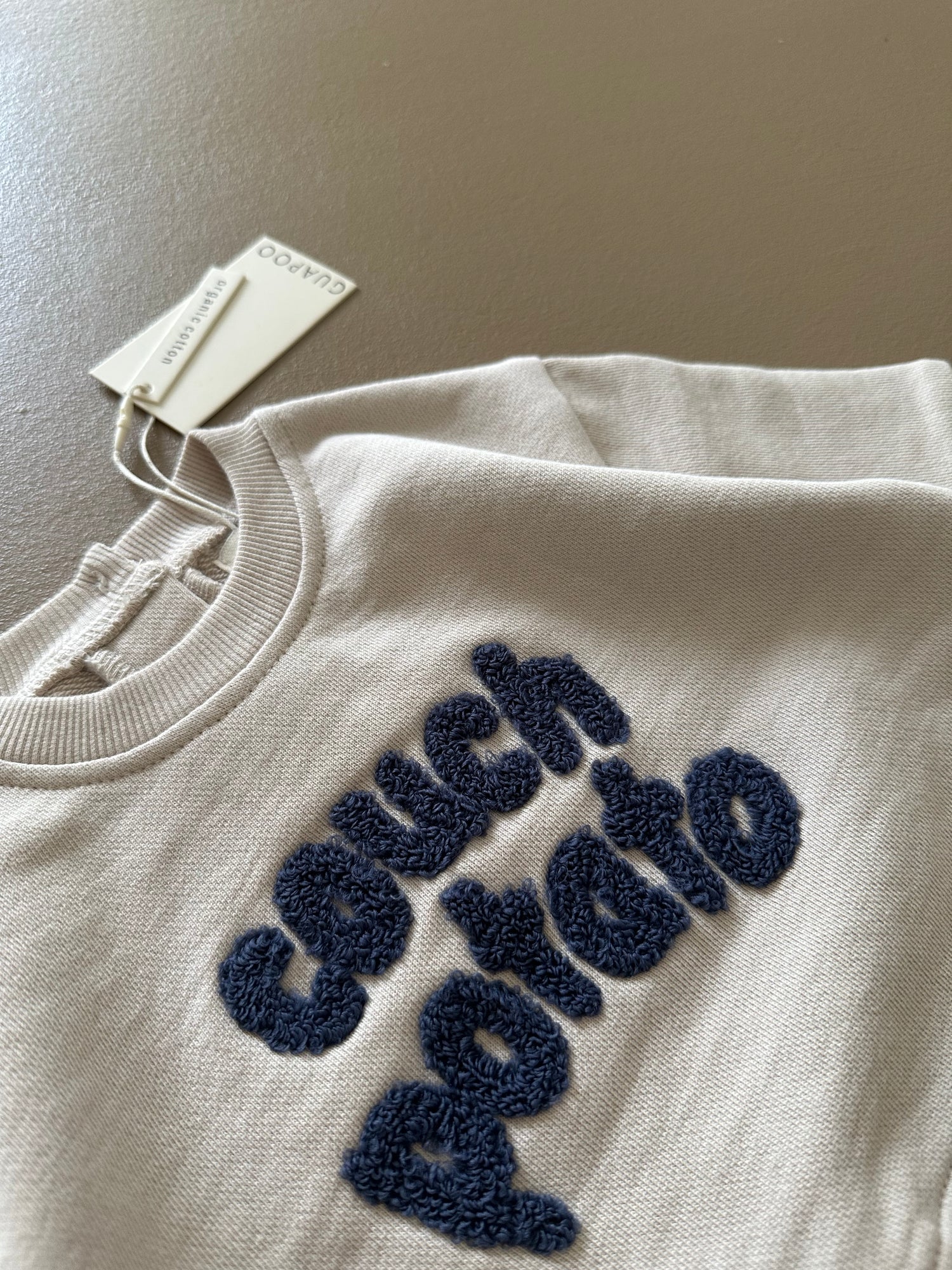 This stylish sweatshirt, featuring the witty blue "Coach Potato" embroidery and the cheeky "Not Today" print on the back, is the perfect companion for any child. Made from comfortable organic cotton, it ensures a cozy feel and expresses everyday life with a wink. Ideal for relaxed days full of fun and comfort
