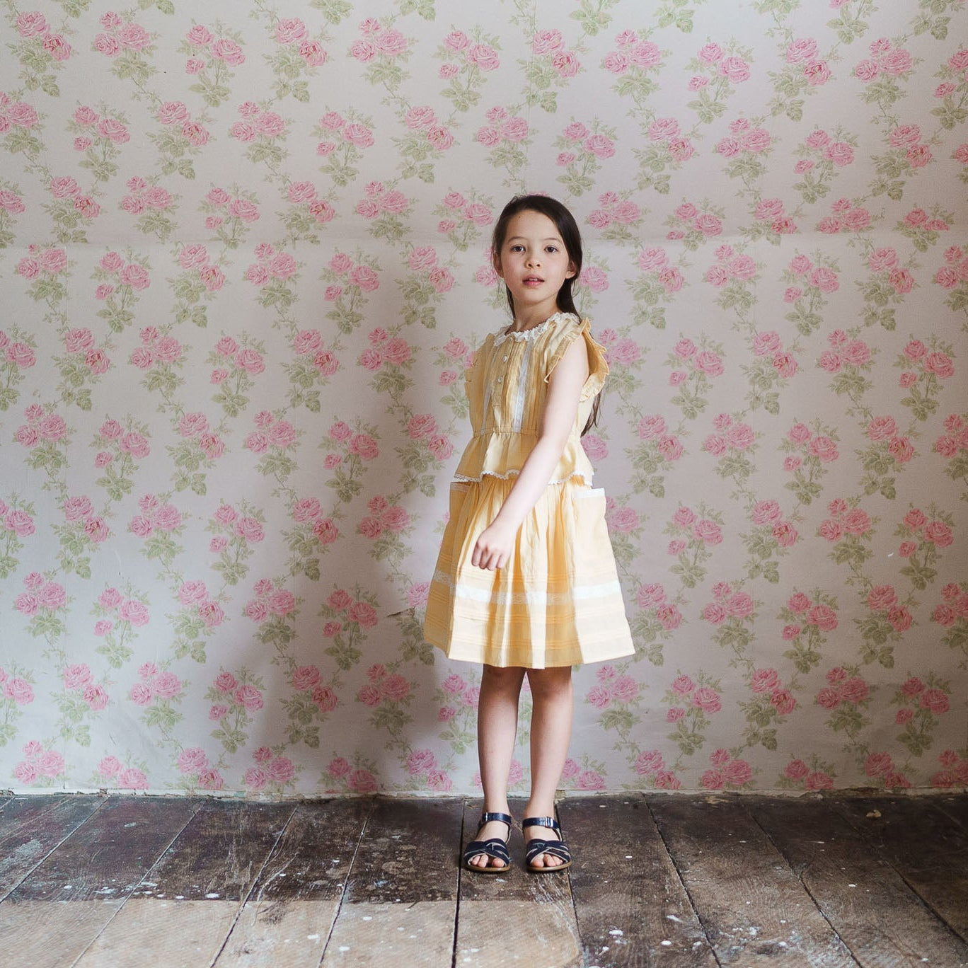 A lovely, simple skirt, perfect for everyday paired with our blouses or organic pointelle t-shirts. Made from a soft, organic cotton with floral cotton-lace trim to the hem, waist and the tops of the patch pockets. This skirt is very full and has an elasticated back waist.