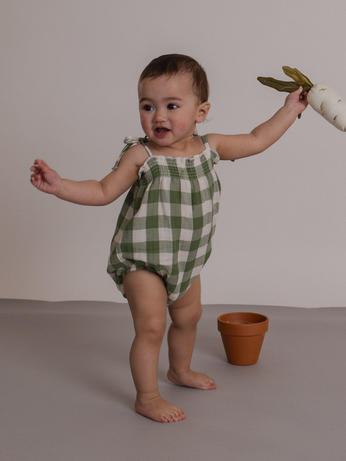 Organic Zoo - Dill Gingham Spaghetti Bodysuit