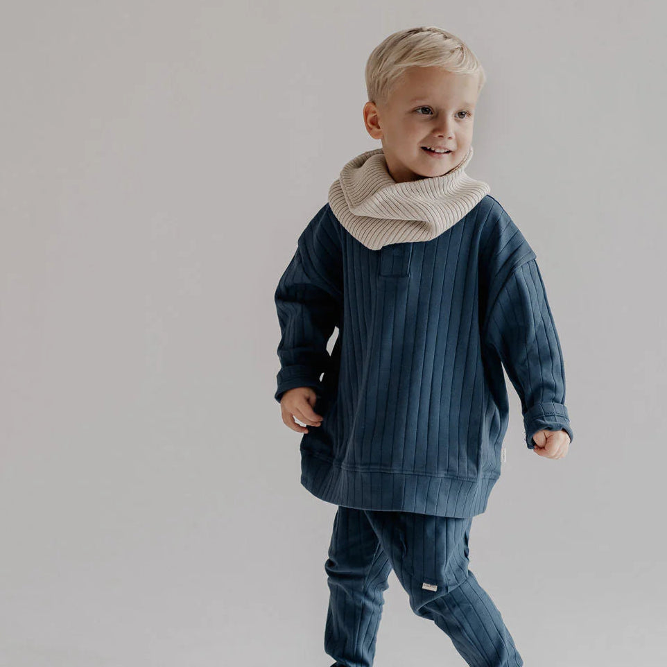 這款可愛的寬羅紋長褲腰部設有兩顆小扣子,加上實用的側口袋設計。柔軟的有機棉材質帶來舒適的貼身感受。搭配同系列的長袖上衣,更能為孩子打造輕鬆又時尚的造型。