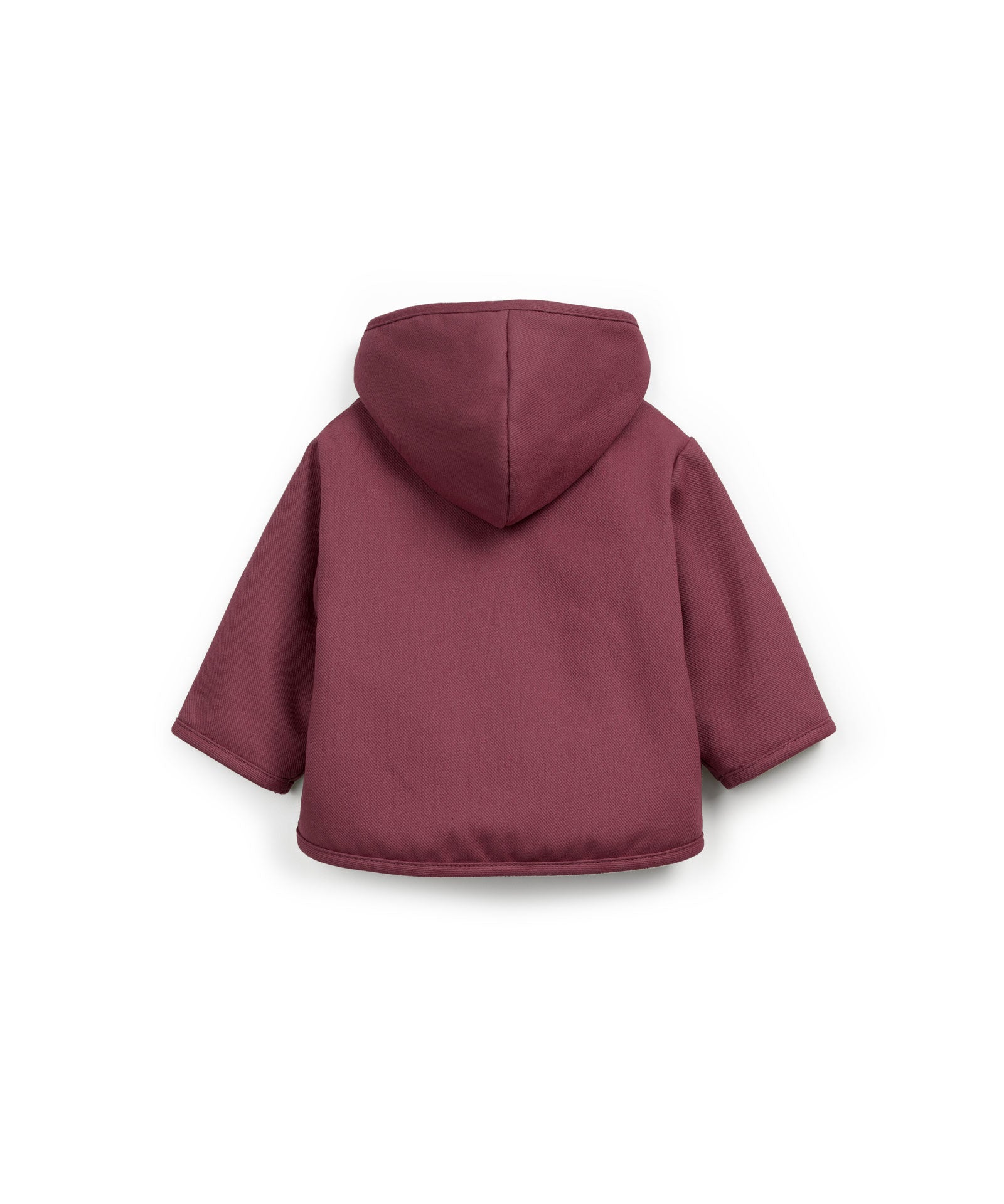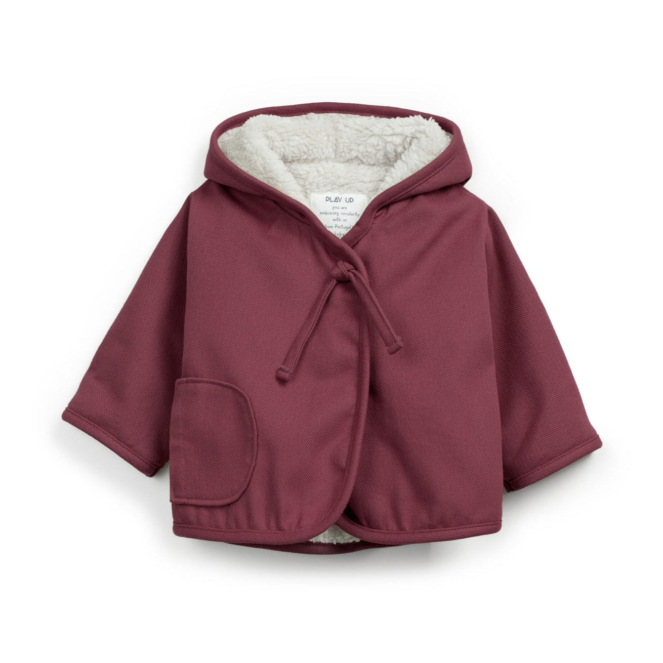 This jacket is made of cotton twill. It features an organic cotton furry lining, a hood, a front opening with zipper, belt detail, elastic cuffs, and waterproof finish.