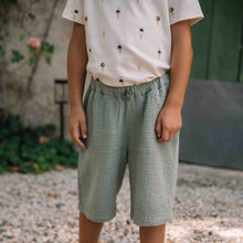 Bermuda shorts in crumpled organic cotton gauze.