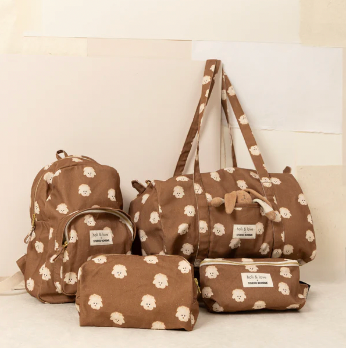 由 Holi & Love 設計,搭配我們獨家的 Dog 狗狗印花,印製在溫潤的摩卡色底上。